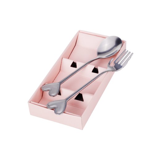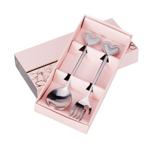 This lovely spoon fork set is nicely designed and crafted with heart design handle. The delicate spoon fork set comes with a pink packaging case. Fine workmanship with beautiful shape, this lovely and exquisite spoon fork set will be widely favored among couples and people who are in love. This spoon fork set is also great wedding gift!