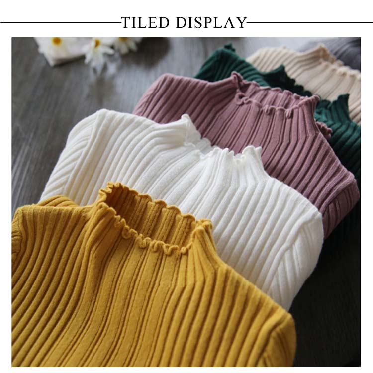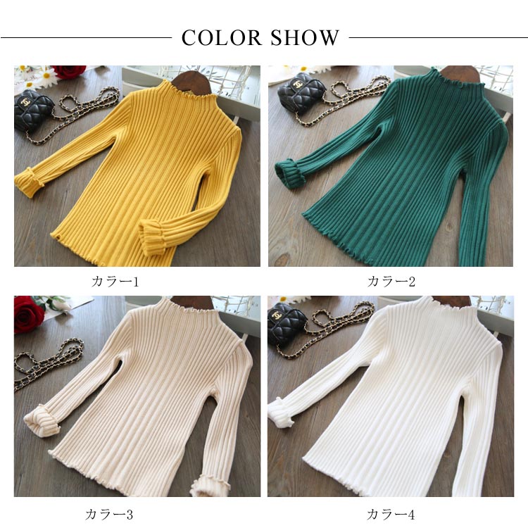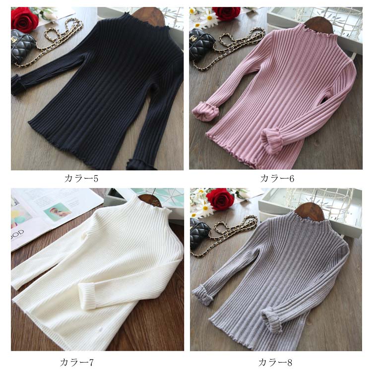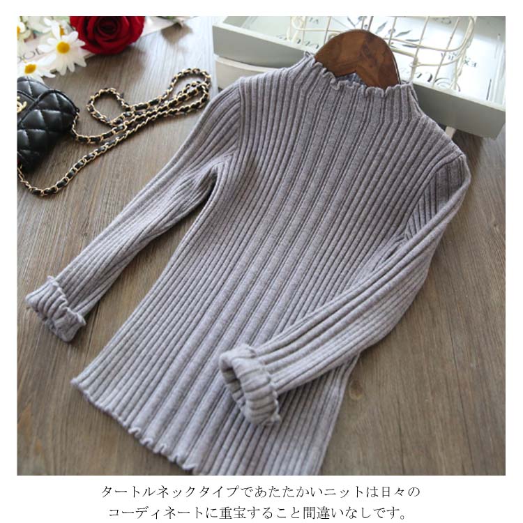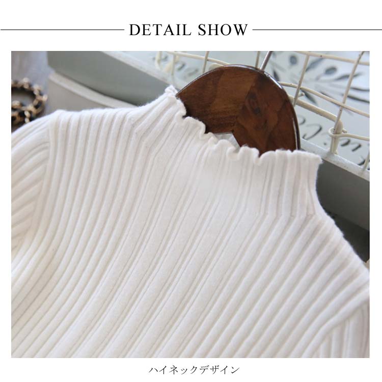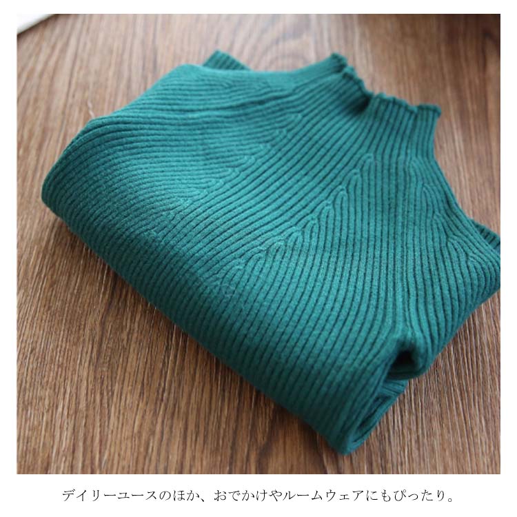 | シンプルながら襟元のフリルがかわいい、細部にこだわった長袖のリブニットです。リブ編みの縦模様はすっきりとした印象を与えてくれ、身体に適度にフィットし伸縮性に飛んでいるので着ぶくれもせず、快適な着心地が得られます。タートルネックタイプであたたかいニットは日々のコーディネートに重宝すること間違いなしです。デイリーユースのほか、おでかけやルームウェアにもぴったり。 | |