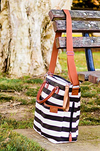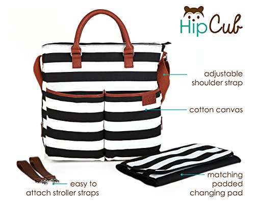 - Title : Diaper Bag by Hip Cub - Plus Matching Baby Changing Pad - Black and White Stripe Designer Cotton Canvas W/ Cute Tan Trim