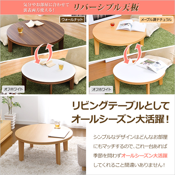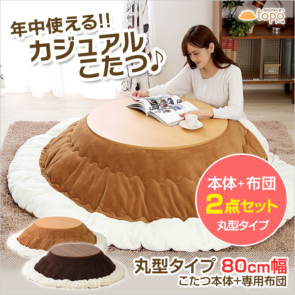 ●和室でも洋室でも合わせやすいカジュアルモダンデザインの丸型こたつセット!