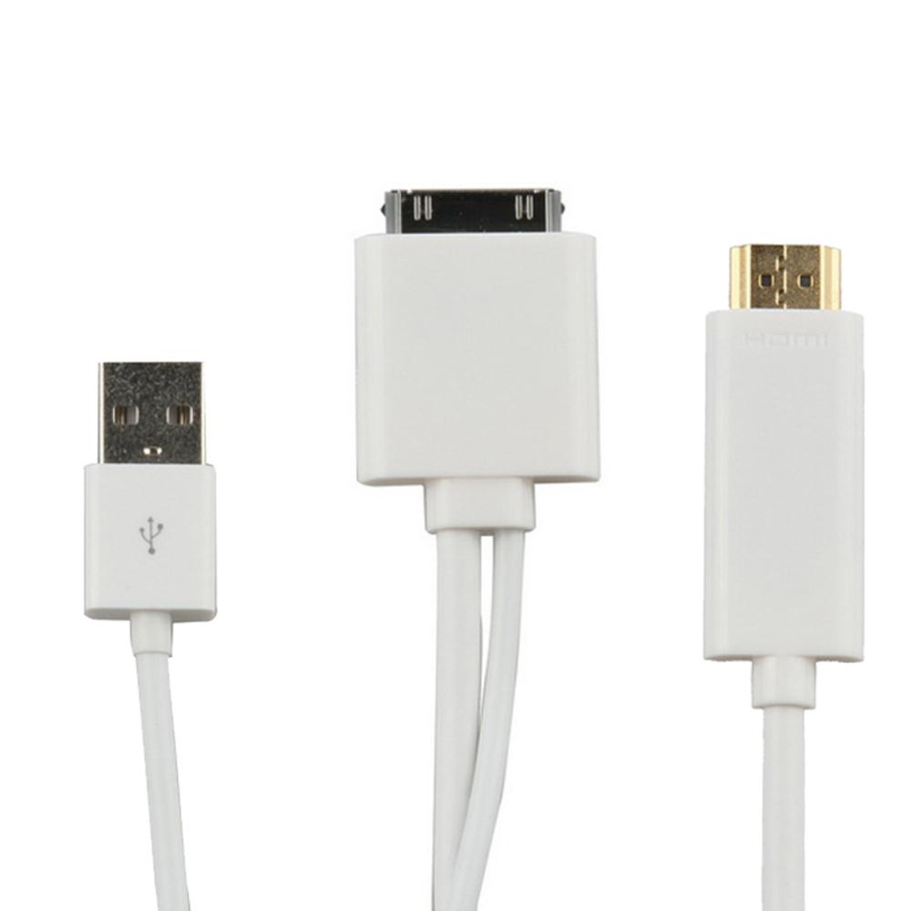 This HDMI cable for apple is ideal for connecting for iPad 2/ 3 for iPhone 4 4S for iPod touch 4th connect HD television, projector, or any other HDMI displays with high-performance built-in chipset, this for apple HDMI cable can support resolutions up to HD 1080p. It is ready to use, just plug the 30pin plug to the docking and the HDMI male end to HDTV etc. With the USB cable, lets you connect to power adapter or PC to charge or sync your for iPhone/ for iPod/ for iPad while it\\\'s connecting to your HDMI- compatible display.