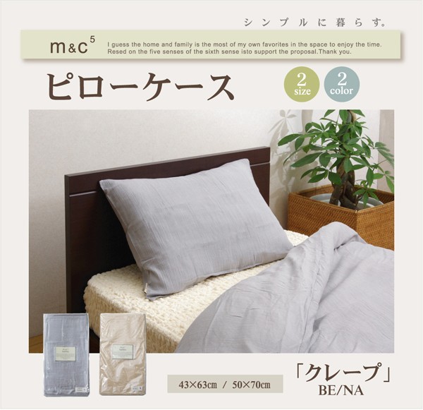 【商品名】寝具カバー 枕カバー 『クレープ ピローケースLS』 ベージュ 43×63cm 綿100%