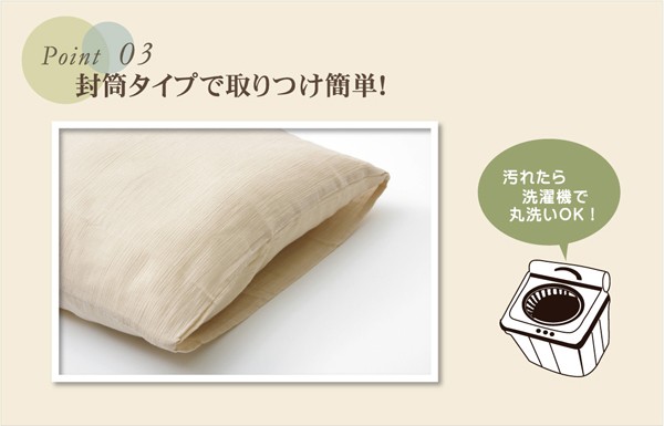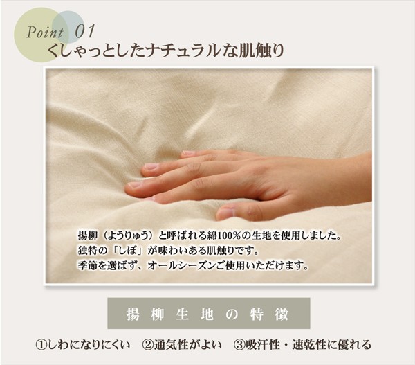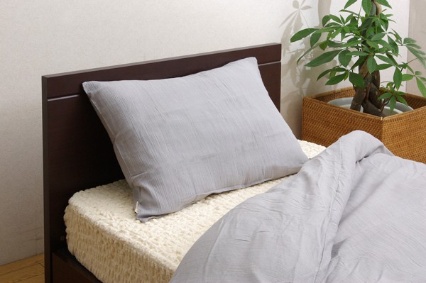 『シンプルでベーシックで素材感のある』をコンセプトに作りました。ベーシックな色目の家具やベッドに合わせやすい『色』にこだわった枕カバーです。生地は綿100%楊柳の生地を使用しています。楊柳とはタテ方向に筋のように『しぼ』を出した綿織物で(1)丈夫でしわになりにくい(2)見た目に涼感がある(3)通気性が良く、さらっとした肌触り(4)吸汗性、速乾性に優れている、などの特長があります。また綿素材はポリエステル素材に比べ、静電気が起きにくいとういう特長もあります。綿100%ですので季節を選ばず、オールシーズンご使用頂けます。ご家庭の洗濯機で洗えるので清潔にご使用頂けます。※本商品は綿素材ですので洗濯される度に若干の縮みが発生します。その為、若干大きめにつくっております。ご了承下さい。