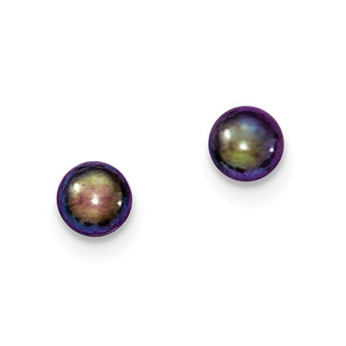 Solid 925 Sterling Silver 6-7mm FW Cultured Button Simulated Pearl Black Earrings