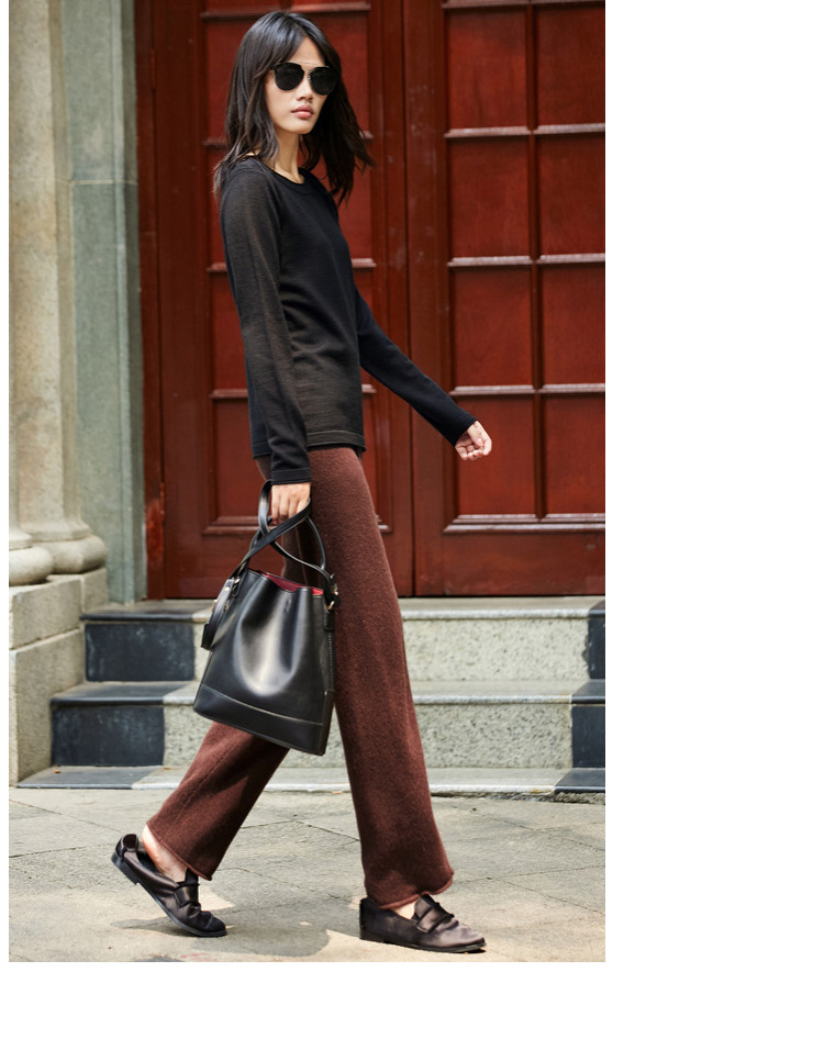 山羊绒混纺蓬松羊毛,饱满纤维感予以长裤舒服又自在穿感,