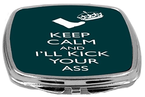 Rikki Knight Compact Mirror, Keep Calm or I'll Kick Your ass Green