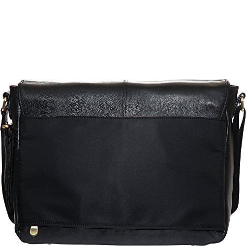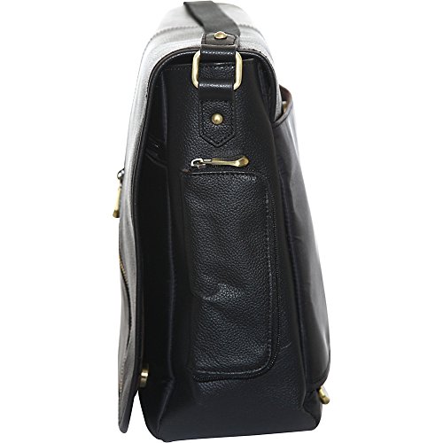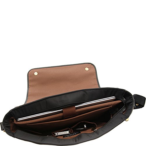 -. Feature : Understated yet striking, this messenger-style bag takes both style and security seriously to impress at work, uptown or on the go. / Slim leather laptop bag accentuated with brushed gold zippers, buttons, and hardware / Messenger-styled flap with zippered quick-access pocket / Hidden under flap zippered storage pocket / Zippered main compartment entry for added security
