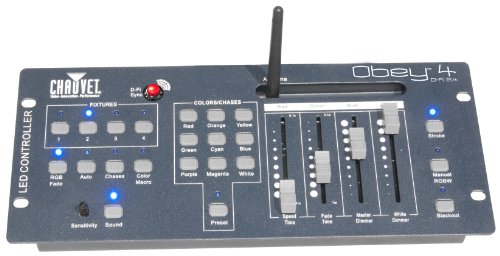 The Chauvet OBEY 4 DMX controller is a compact DMX controller for LED wash lights with 3- or 4-channel modes-red.