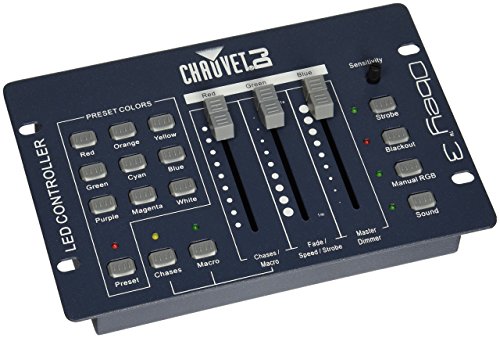 It’s a compact DMX controller for LED wash lights with 3- or 4-channel modes—red, green, blue and white/amber—for easy color-mixing control. It has built-in automated, sound-activated or manual playback options and can control fixtures in four different zones—independently of each other. Its one-touch buttons of pre-mixed colors, built-in chases and strobe and dimmer controls make it perfect for a lighting novice or anyone looking for an easy way to control LED washes.Feature