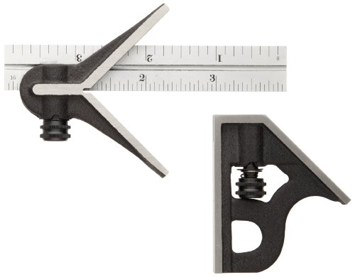 Starrett C11HC-4-4R Cast Iron Square And Center Heads With Satin Chrome Blade Combination Square, Black Wrinkle Finish, 4R Graduation, 4" Size