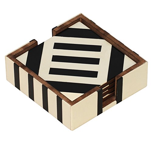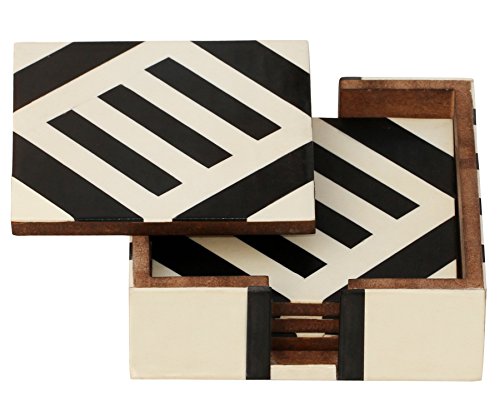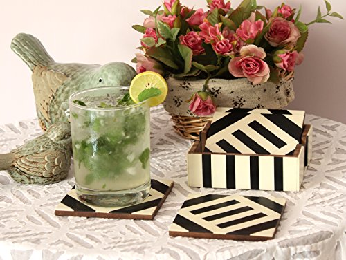 - Go a step further when protecting your table from drink stains and spills with these unique square coasters with a graphic mix of geometric shapes in black and white. A great way to get a party started, these coasters makes a striking addition to a variety of decors and table settings
