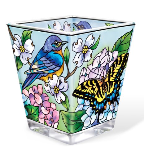 Amia Petite Votive with Bluebird and Butterfly Design, Hand Painted Glass, 2-1/2-Inch by 3-Inch by 2-1/2-Inch