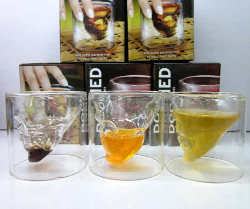 This formidable shot glass is our tribute to the Skull ofDoom? which Mayan legend claims has the power of life anddeath? the power to heal or to smite? the power to createmiracles. We make no claims beyond these: our DoomedCrystal Skull Shot Glass will hold 2.5 ounces of yourfavorite beverage and will stare right in your eye as youdown your shot. Don 't blink!
