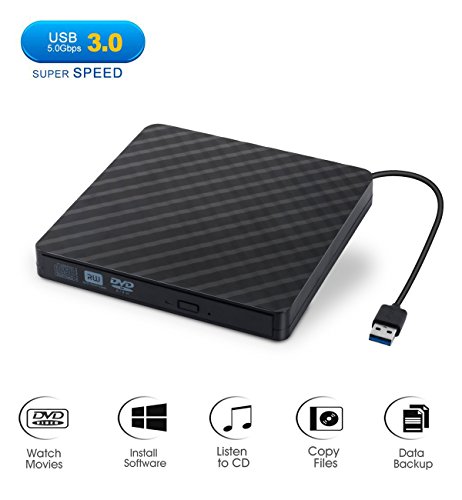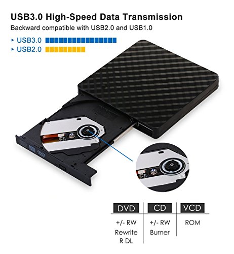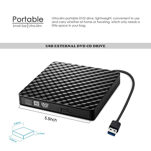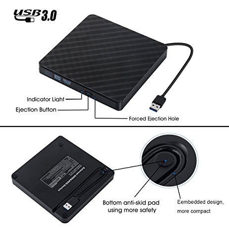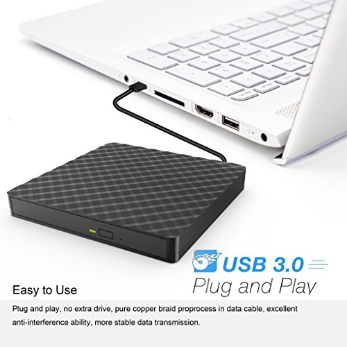 ★【USB 3.0 INTERFACE】- External DVD Drive comes with standard USB 3.0 high speed interface, provide more faster and stable data transfer speed. Embedded cable design made it easy for storage, you can take it anywhere with slim, lightweight, compact, portable size. It is backwards compatible with USB 2.0 and USB 1.0.