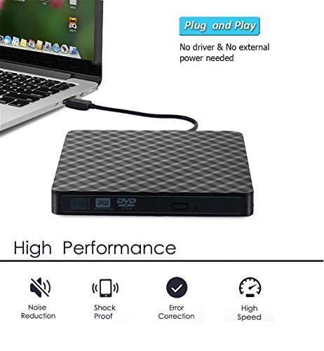 ★【PLUG & PLAY】- Easy to install and use. Powered by the USB port, no external driver required, run automatically after connect to USB port of your mac/ laptops/ desktops. You can use our portable External CD Drive/DVD Writer/Player to burn files, install software and create a backup CD which is a perfect companion for computers.