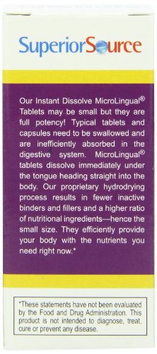 -. Binding : Health and Beauty -. Brand : Superior Source -. EAN : 0076635920402 -. Feature : Supports bone and dental health and promotes healthy muscle tone / As a dietary supplement, dissolve one micro lingual tablet under the tongue daily / May also be swallowed as you would a regular tablet -. IsAdultProduct : 0 -. Label : Superior Source -. Manufacturer : Superior Source -. Model : No Model Number -. MPN : 92040 -. NumberOfItems : 1 -. PackageQuantity : 1 -. PartNumber : 92040 -. ProductGroup : Health and Beauty -. ProductTypeName : HEALTH_PERSONAL_CARE -. PublicationDate : 2013-03-30 -. Publisher : Superior Source -. ReleaseDate : 2015-06-22 -. Size : 60 Tablets -. Studio : Superior Source -. Title : Superior Source No Shot Advanced B12/B6/Folic Acid Multivitamins, 2000 mcg/2 mg/600 mcg, 60 Count -. UPC : 076635920402