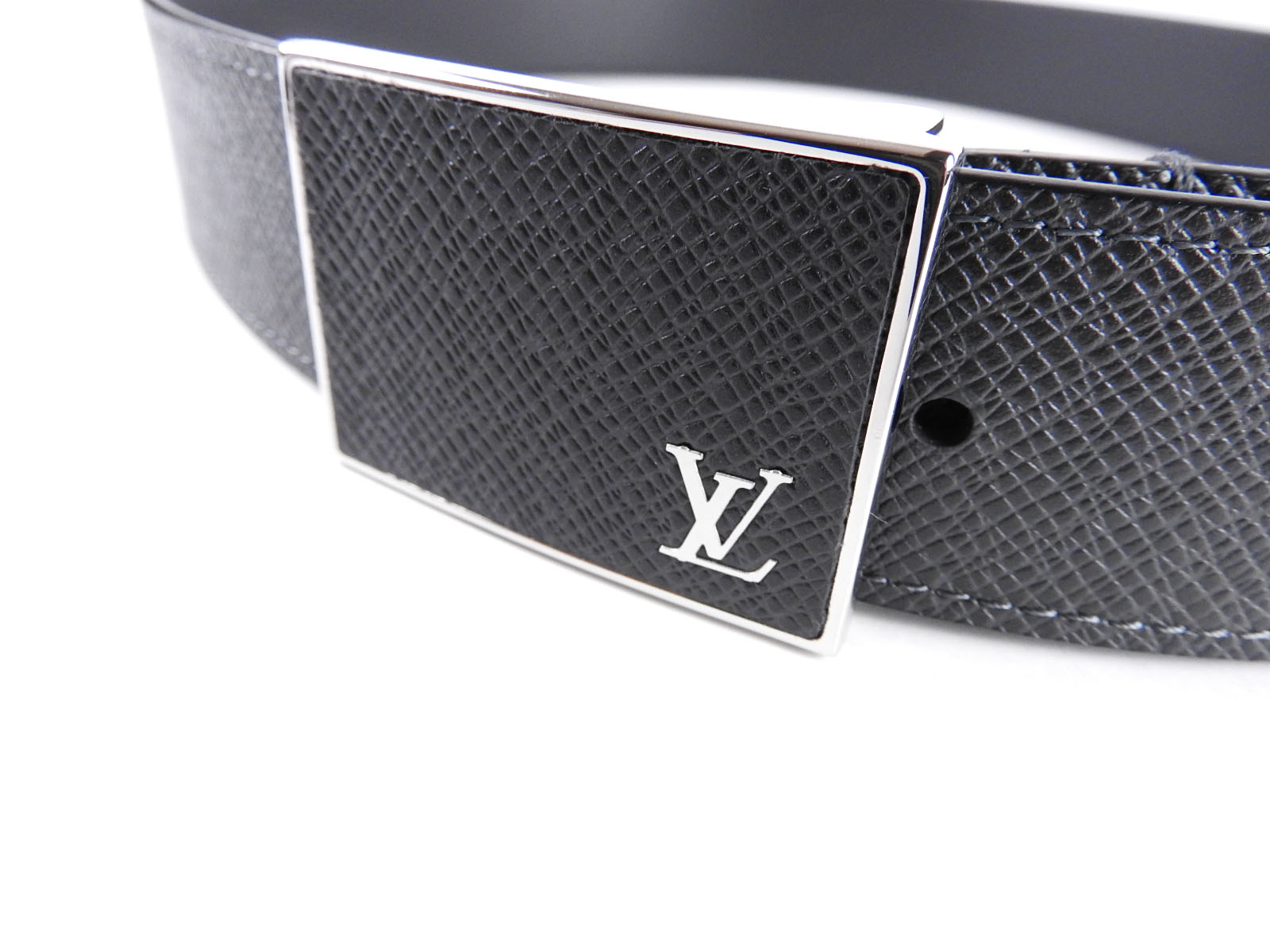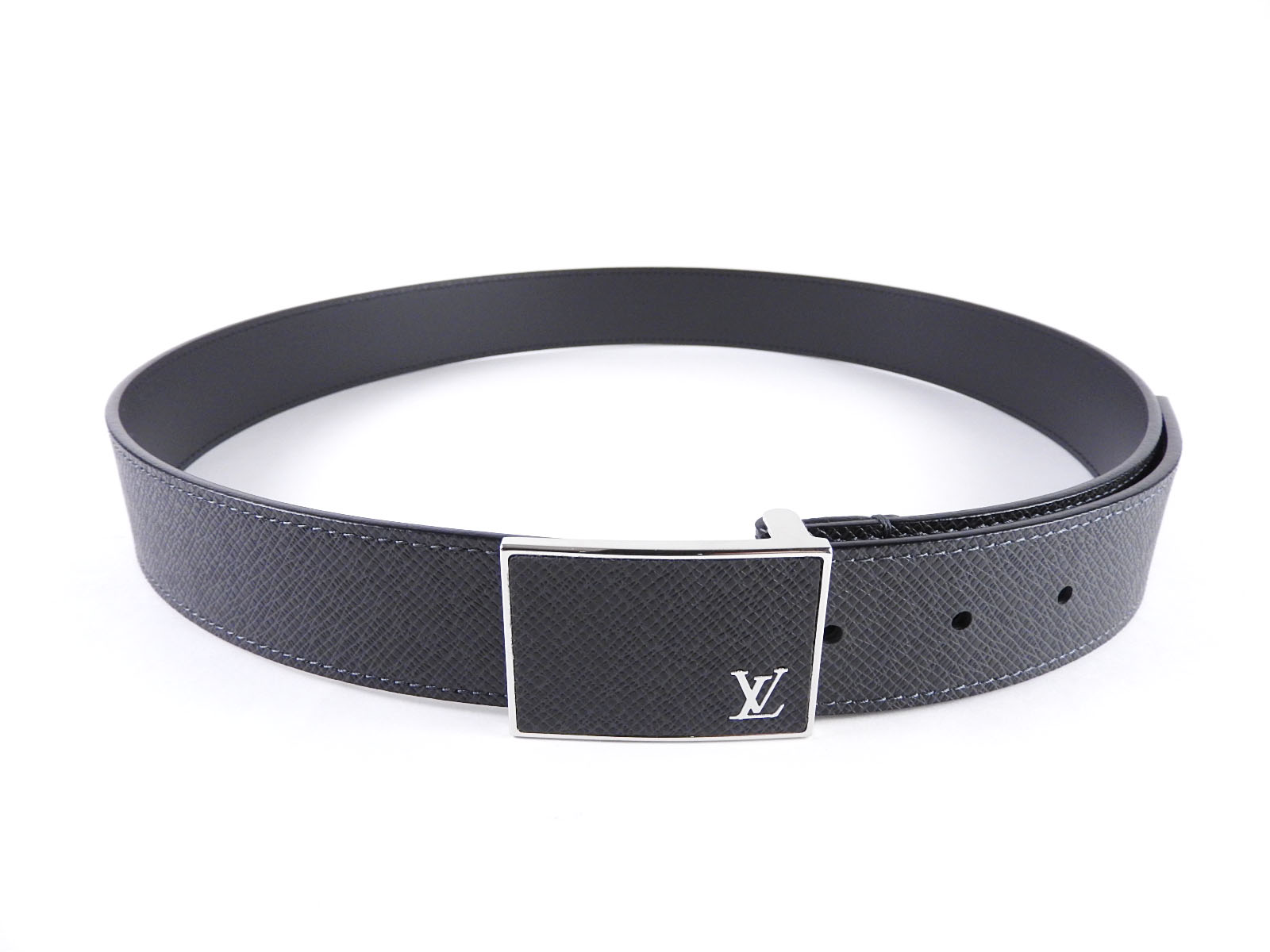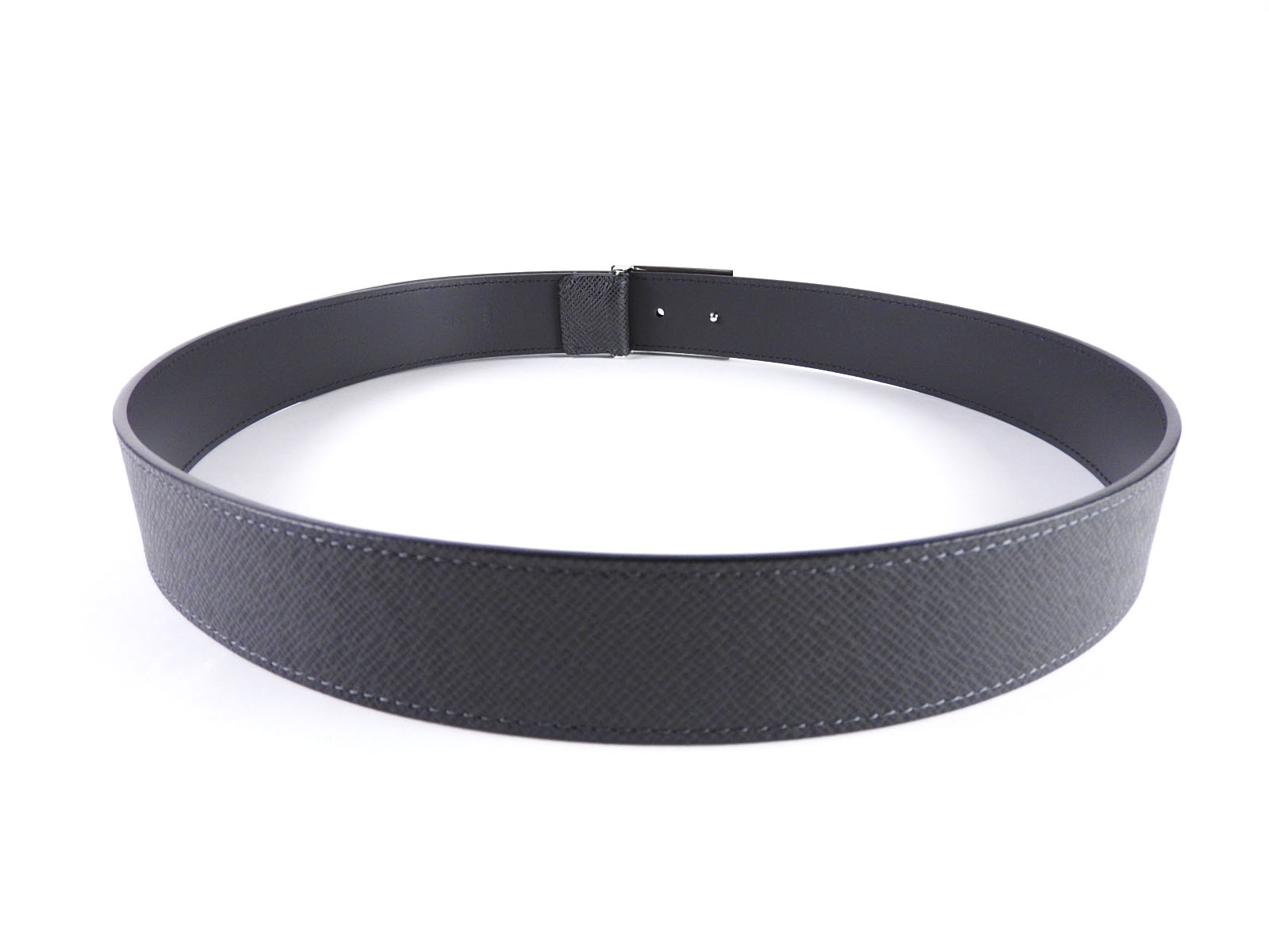 Auth LOUIS VUITTON Unused Taiga Ceinture Metropole Belt 35MM 90/36 Ardoise Black Leather Silver M9059S A-6669