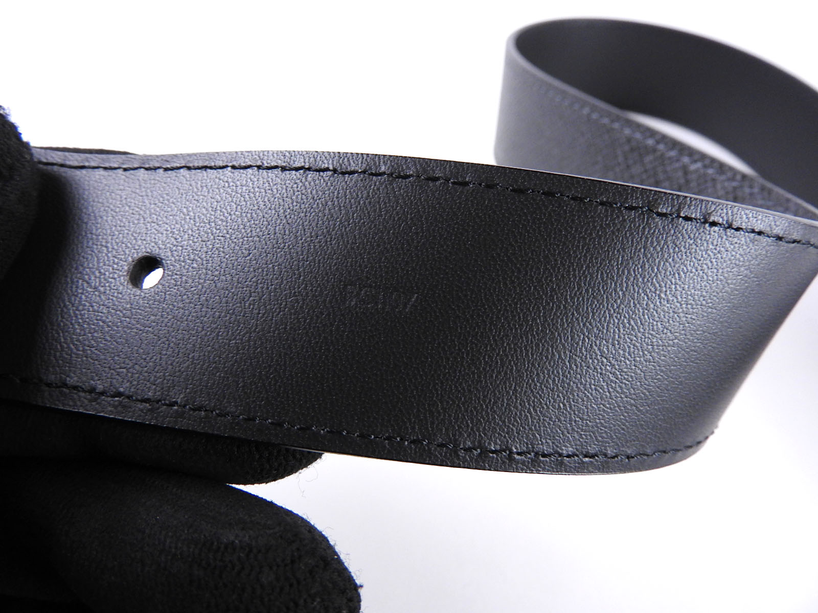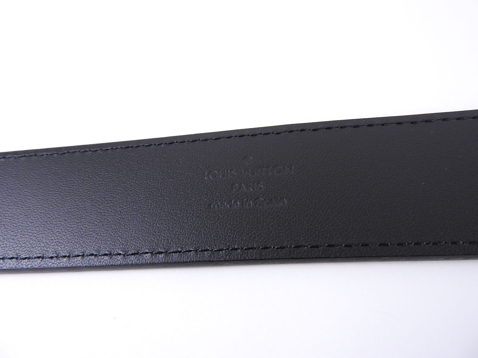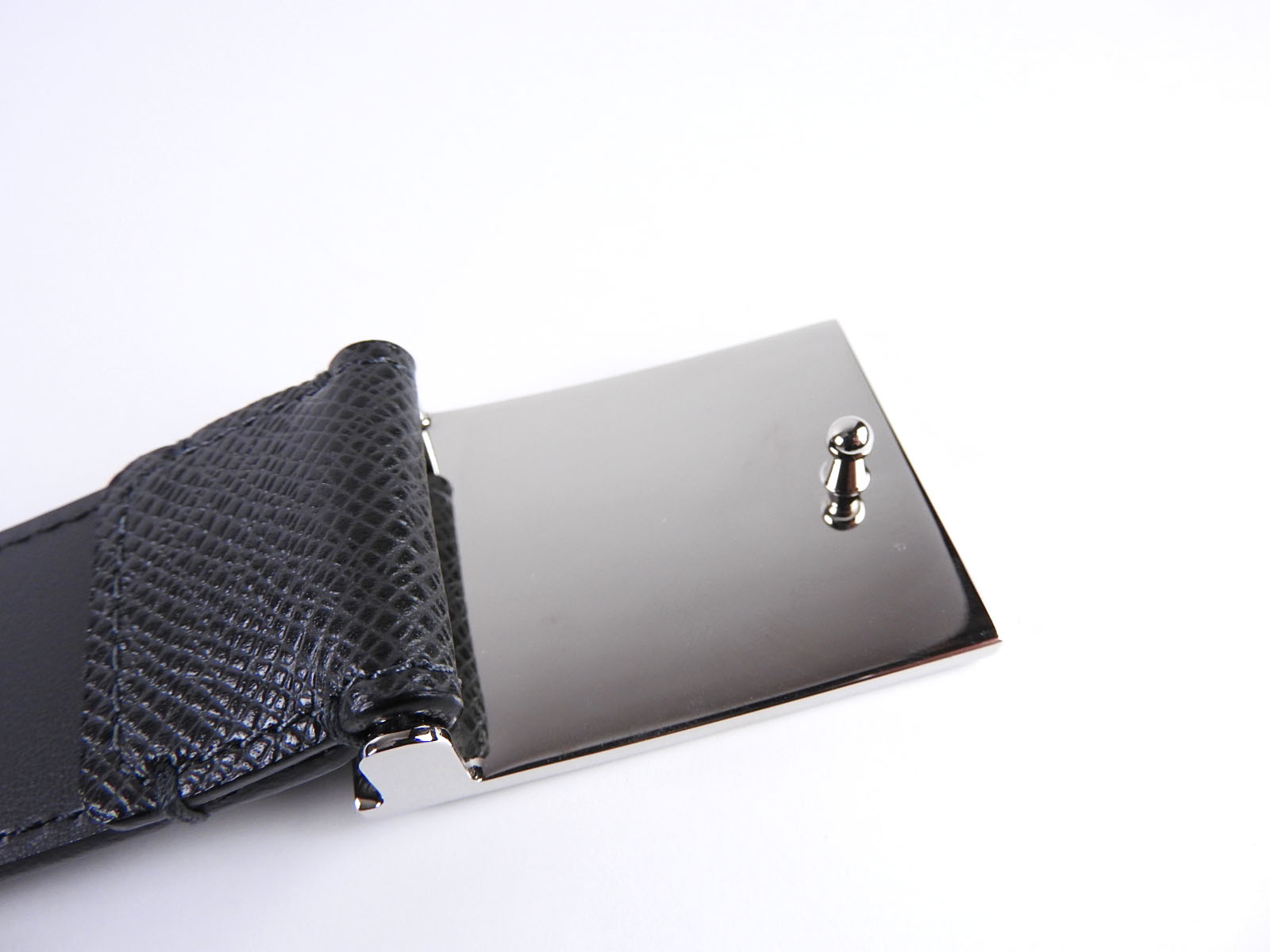 Auth LOUIS VUITTON Unused Taiga Ceinture Metropole Belt 35MM 90/36 Ardoise Black Leather Silver M9059S A-6669