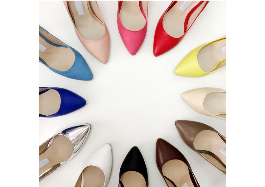 レディースファッションの婦人靴(レディースシューズ)の分野でパンプスは代表的なカテゴリー。スニーカー、ミュール、サンダルなど数かあるレディスファッションシューズの中でも最もスタンダードな種類で痛くないフラット(ぺたんこ)やピンヒール、ローヒール、オープントゥ、ストラップ、太ヒール、厚底、ポインテッドトゥ、バイカラー、リボン付きや、ひょう柄、メッシュなど種類や形状も多く存在し最も女性らしさを引き立て世界で多くの女性に愛されています。