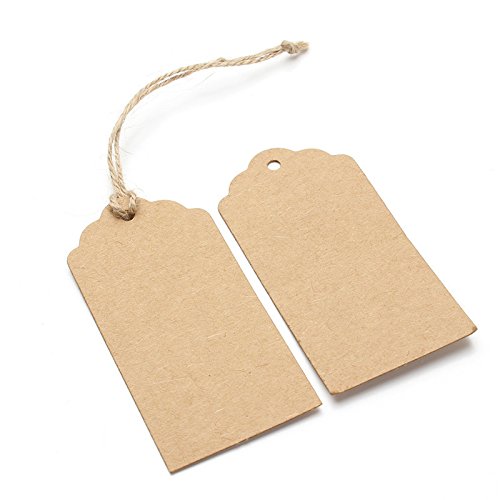 100pcs Kraft Paper Gift Tags with Free 100 Root Natural Jute Twine(Water Ripple)