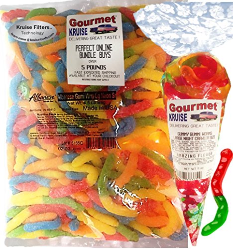 -. Title : Gummi Gummy Sour Worms Albanese - Bulk Candy 4.5Lb Bag With Large Night Crawler Size Worms Gourmet Kruise Signature Gift Bag 11 OZ (NET WT 83 OZ) 2 Item Bundle