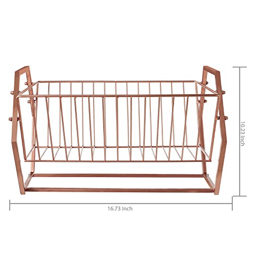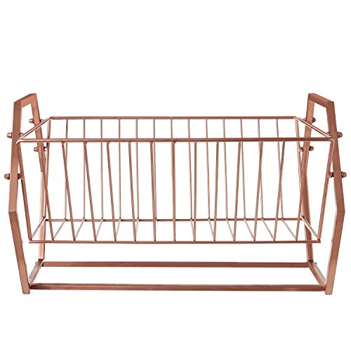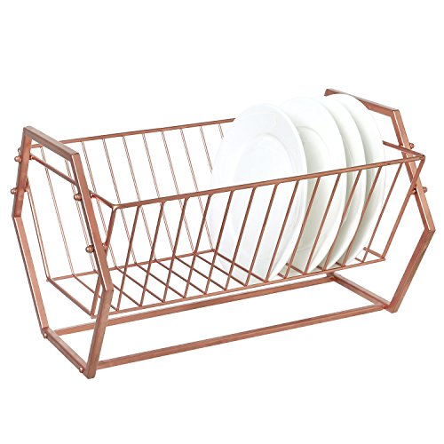 Countertop Copper-Tone Metal Dish Drying Rack, Hexagonal-Design Kitchen Plates Storage Organizer