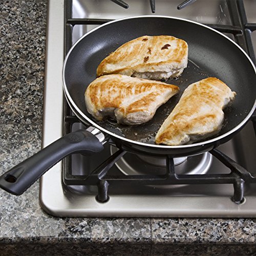 QUALITY DESIGN: Crafted from durable and resilient pure heavy-gauge aluminum, the Ecolution Artistry Non-Stick Fry Pan is the perfect tool for cooking fish, meat, poultry, vegetables, and other dishes that require a large cooking surface! It features a comfortable and soft silicone handle for easy use, grooved rings for consistent heating, and was designed with multilayer Hydrolon® non-stick, a water-based non-toxic coating that encourages healthy and eco-friendly cooking.