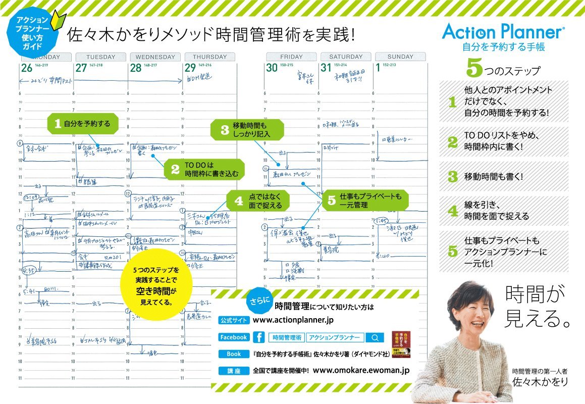 "Action planner" that invented a note book boom in Japan, invented by Sasaki Kagari, "visualize" the invisible time, separate everything in 30 minutes, and from Monday to Sunday from the same time axis so that all of his actions can be written
