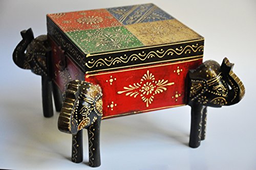 Hand painted Jewelry Decorative Box made of High Quality wood. The Legs of the box are in the shape of Elephants. Completely unique and perfect for gifting in this Christmas and holiday season