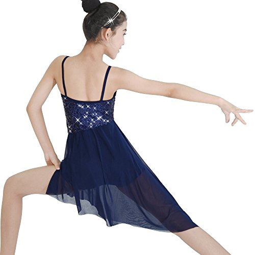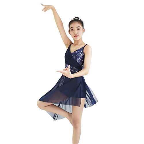 MiDee Latin Dance Costume V-Neck Sequined High-Low Lyrical Dress For Girls
