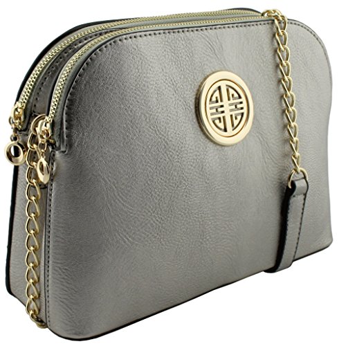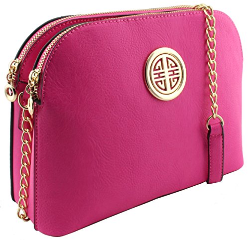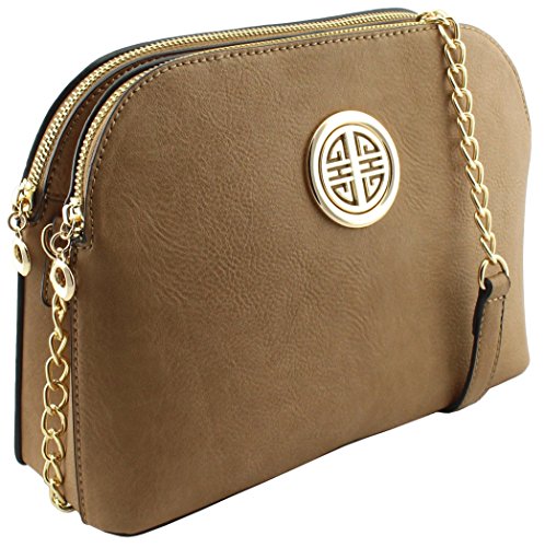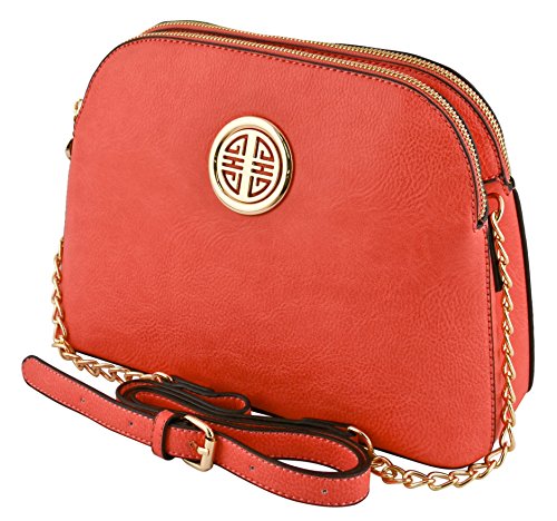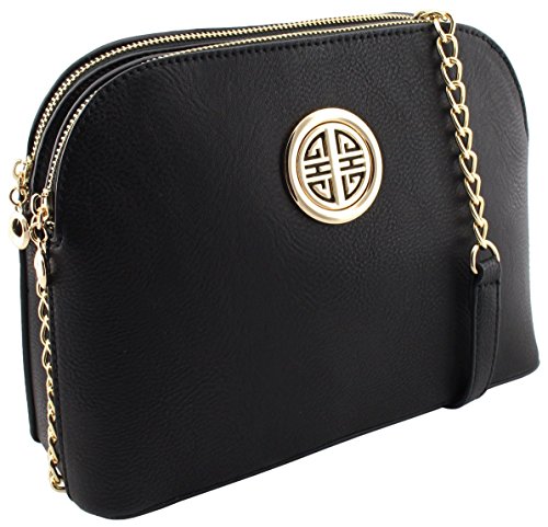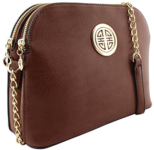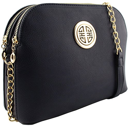 Multi pockets cross body bags for women. It has adjustable cross body shoulder strap with gold tone chain detail. ( 24" drop maximum )