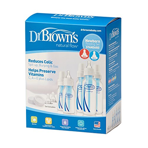 -. Binding : Baby Product -. Brand : Dr. Brown's -. Feature : Positive-pressure flow for vacuum-free feeding that is similar to breastfeeding / Reduces feeding problems like colic, spit-up, burping and gas / Vent system that removes air from milk maintains essential vitamins such as C, A and E / Helps prevent fluid in the ear. BPA, PVC, lead and phthalate free -. Label : Dr. Browns -. Manufacturer : Dr. Browns -. ProductGroup : Baby Product -. ProductTypeName : BABY_PRODUCT -. Publisher : Dr. Browns -. Studio : Dr. Browns -. Title : Dr. Browns BPA Natural Flow Bottle Newborn Feeding Set (Packaging may vary)