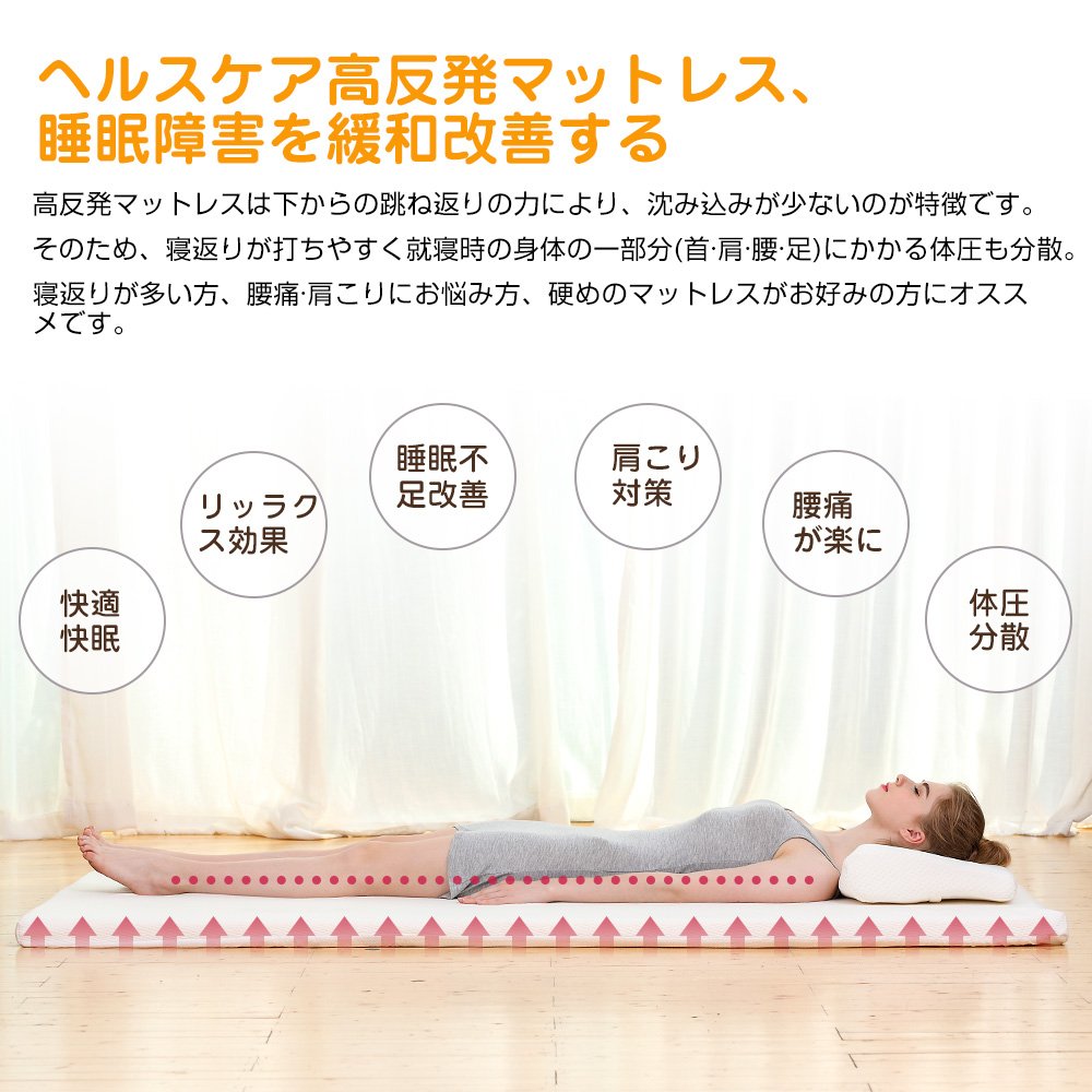 It supports the body to lift and it distributes the pressure of the body so it is hard to place a burden on one place and there is no uncomfortable sound when it hits the turnover and make an ideal sleeping posture naturally