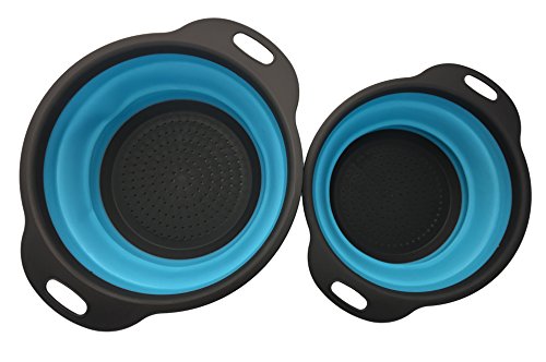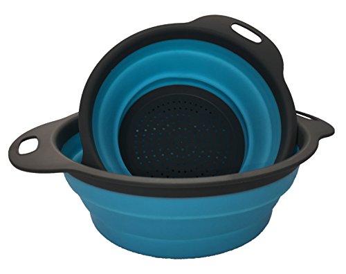 BonBon Colander Set - 2 Collapsible Colanders Strainers Includes 2 Folding Strainers Sizes 8" (2 Quart) and 9.5" - (3 Quart) (Blue)