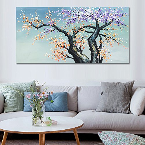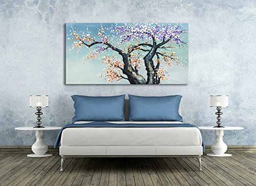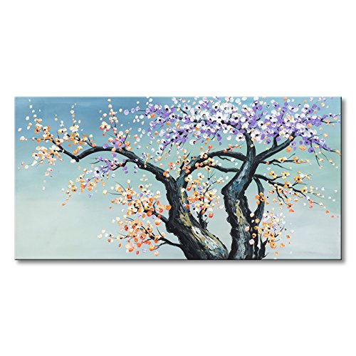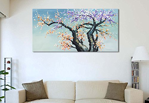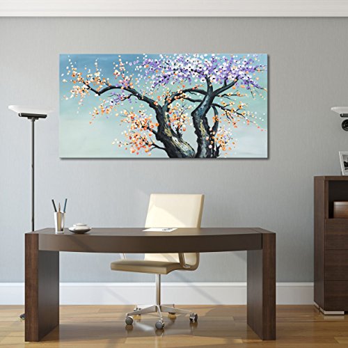 Hand painted flower oil painting on canvas. This handmade modern plum blossom canvas wall art for living room, bedroom, kitchen, office, Hotel, dining room, bathroom, bar etc.