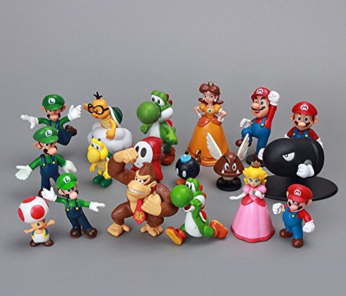 -. Feature : 18 Pcs Super Mario Brothers Figures Set / They are good ornament. bedroom, car, drawing room and so on / Size: about 1.2 "- 2" , material: PVC