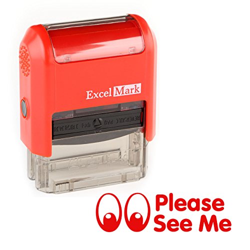 -. Feature : Self-inking stamp for teachers / Red stamp mount with a clear base allows you to easily align impressions / Features a double-sided, two-color (red on one side, blue on the other) ink pad that doubles the number of impressions and the useful life of the pad / Thousands of impressions before re-inking is necessary / Impression area: 1/2" x 1/1/2", Impression message: "Please See Me" with eyes graphic