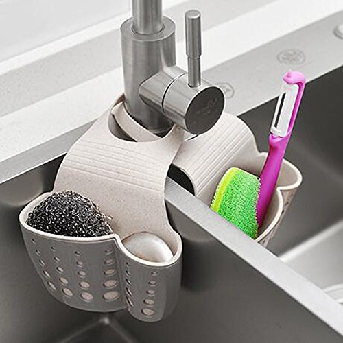 TuuTyss Wheat Straw Hanging Ajustable Strap Sponge Holder Sink Caddy for Kitchen,Grey