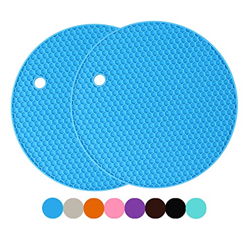 LogHog Set of 2 Silicone Coasters Pot Holder Cup Mat,Non Slip Flexible Durable Heat Resistant Hot Pad (Round) (2 Pieces Blue)