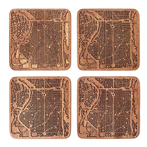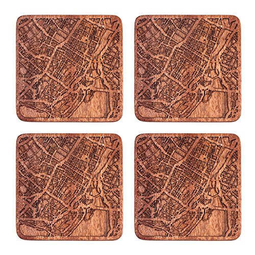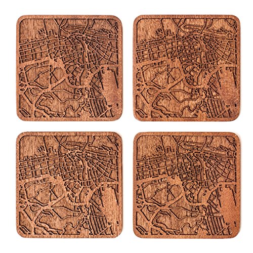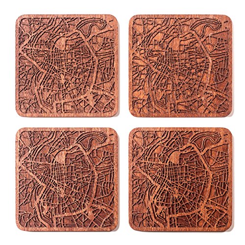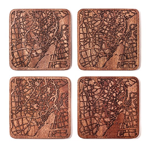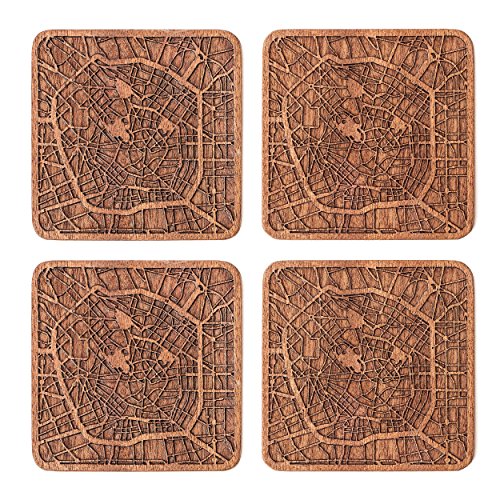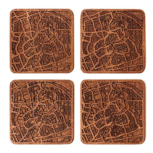 We have been considering applying the map on practical products. Finally, we have made it through developing this solid wooden coaster. Each coaster was developed in our workshop through a process of machine carving, manual polishing and burnishing, and painting. The whole process needs two weeks. The reason of choosing Sapele wood is that it is endowed with vintage feel.
