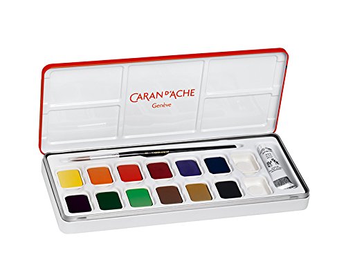 Caran d'Ache School Line Gouache Water Color Palette, 13 Colors