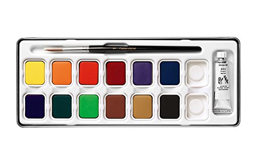 Add luminous color and watercolor effects to your artwork with this gouache cake watercolor palette, which includes one paint brush and one tube of white acryl gouache