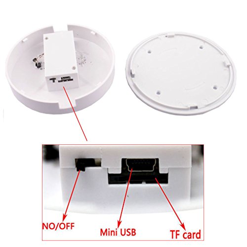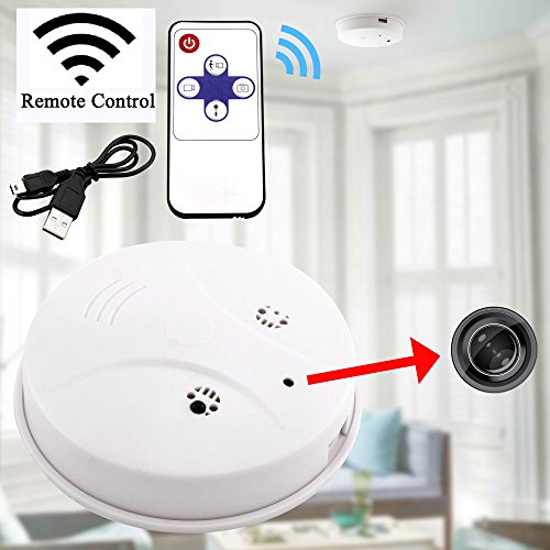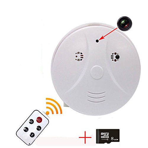 -. Feature : This is a mini wireless surveillance camera with smoke detector design (without smoke detector function), which is also a covert security camera, / With motion detection and loop recording function, never miss or worry about emergency situation. / Camera controller can easily to give an order like take phones, record video with audio or only record audio. / First use it please sync the video display time on the computer and check out if the camera can read the TF card normally. / What you get: 1x spy camera smoke detector,1x 8G momory card, 1x remote control, 1x usb cable, 1x manual, 1 year warranty and friendly customer services.