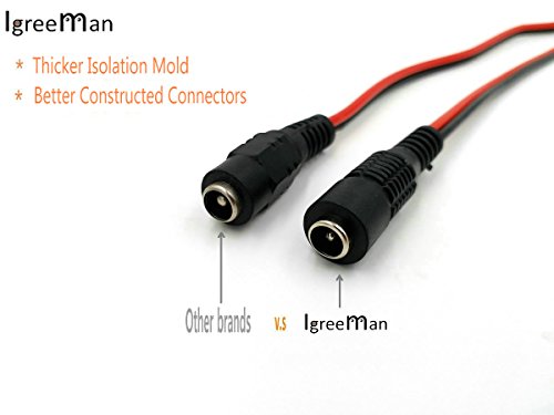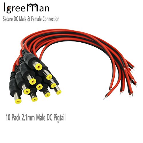 Igreeman 10 Pair DC Power Pigtail Male & Female Cable (Upgrated 18AWG) with 2.1mm x 5.5mm Connectors for Home Security Surveillance Camera Power Adapter and Party lighting Power Connection