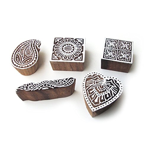 -. Title : Designer Square and Paisley Motif Wooden Stamps for P.R.Inting (Set of 5)