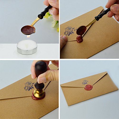 - USING STEPS: First cut wax and put it on the spoon.Then use the white candle to heat the spoon. After the wax melts totally, drop it on the envelope. Use the stamp to print. At the beginning if you are not skilled, you can print it on the glass for practice. Spoon can be wiped clean in the paint with a paper or towel after heating.