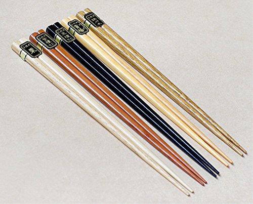 Shuxy 5 Pair Wooden Chopsticks Multicolored Japanese Pattern Reusable Natural Square Chopstick for Kitchen Dinner - 9 inches