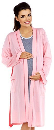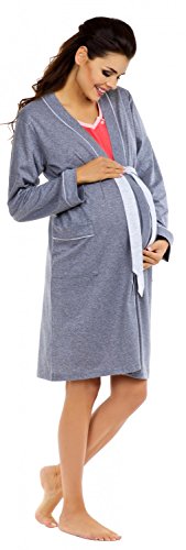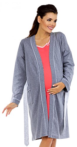 Functional and comfortable maternity nightshirt and robe, designed with extra room around the tummy.