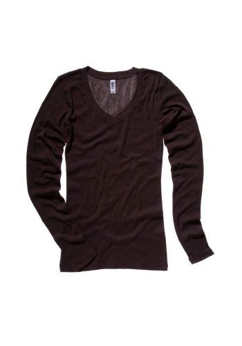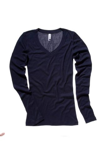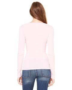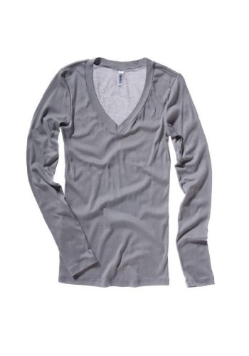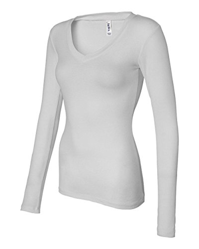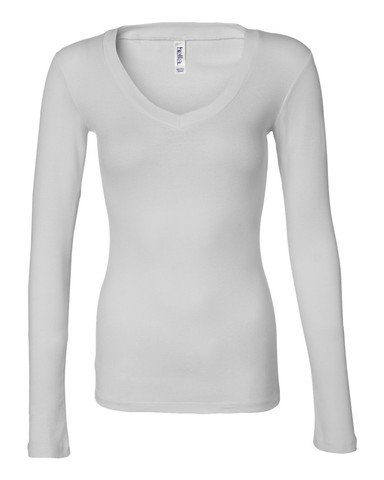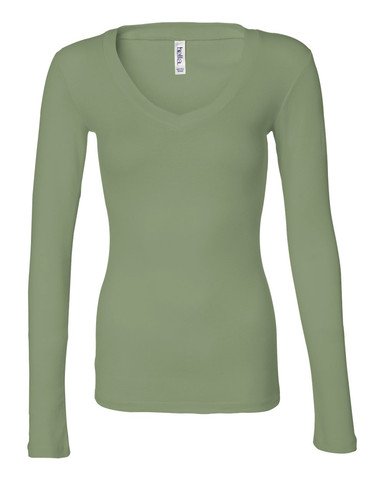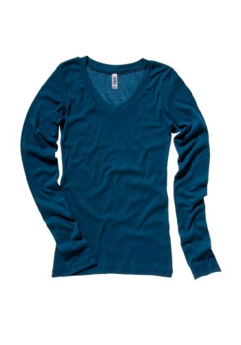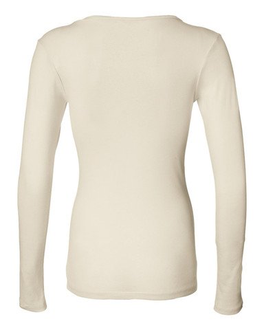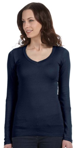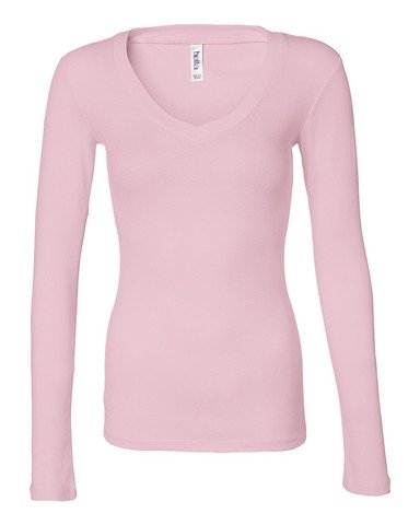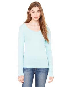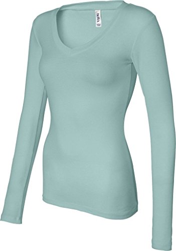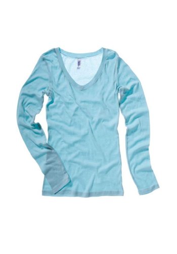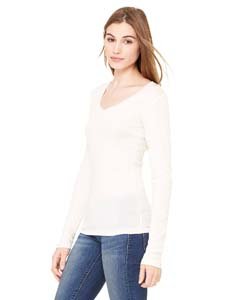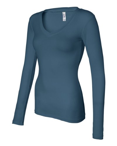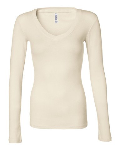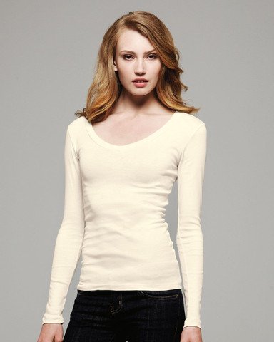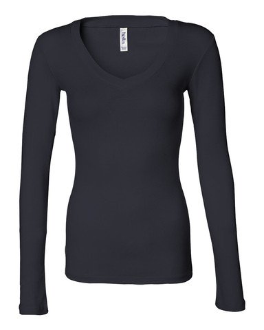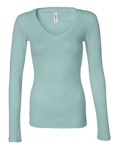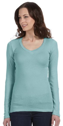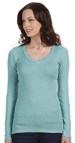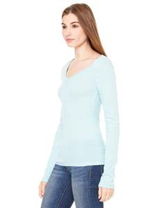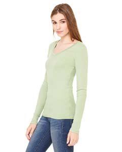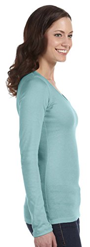 | Bella Womens Andrea Sheer Rib Long Sleeve Longer-Length V Neck T Shirt. B8750 |