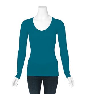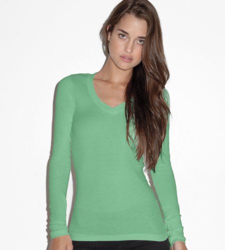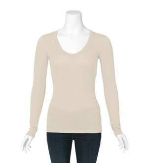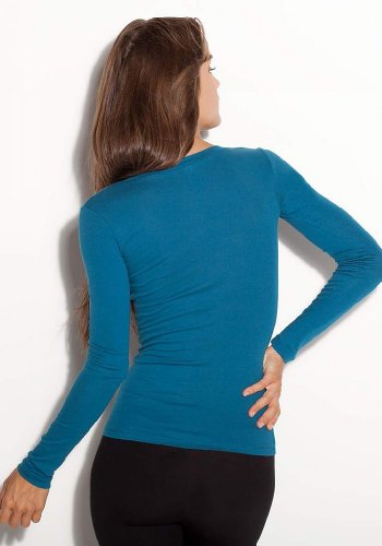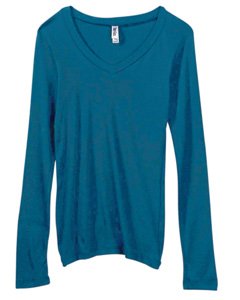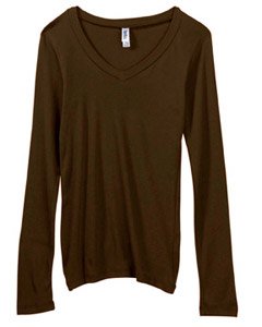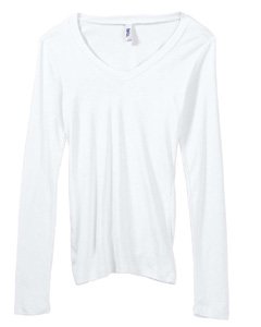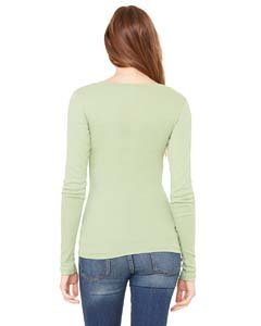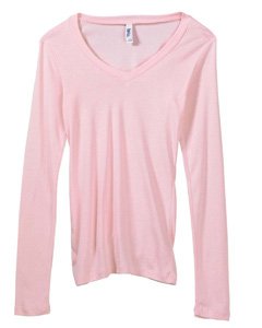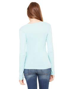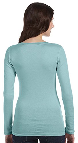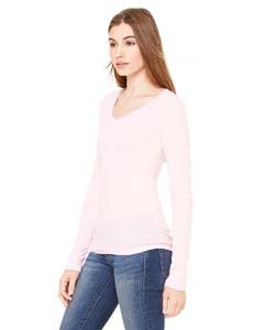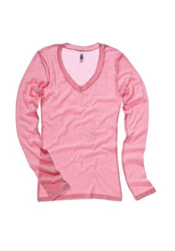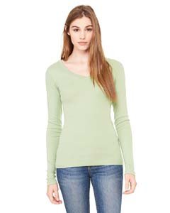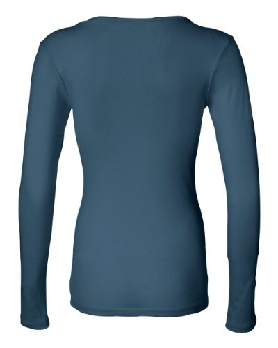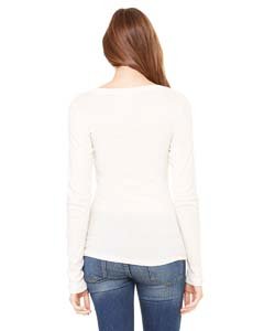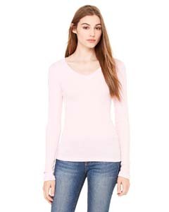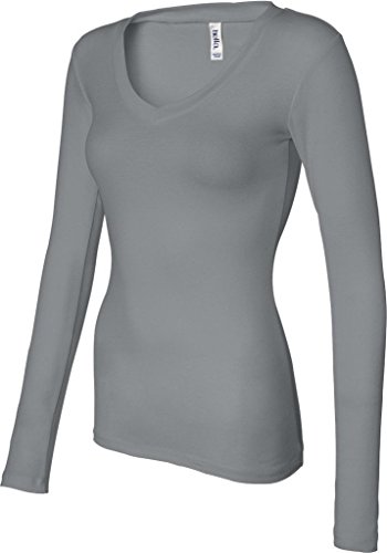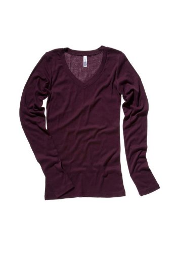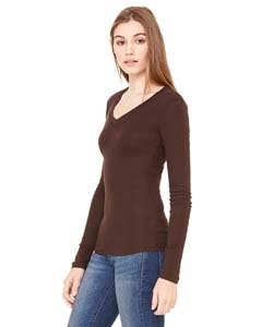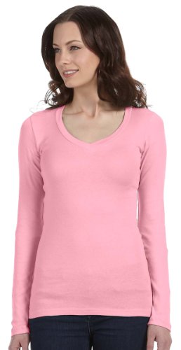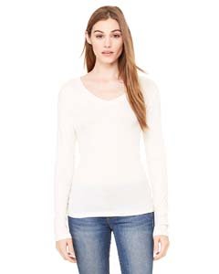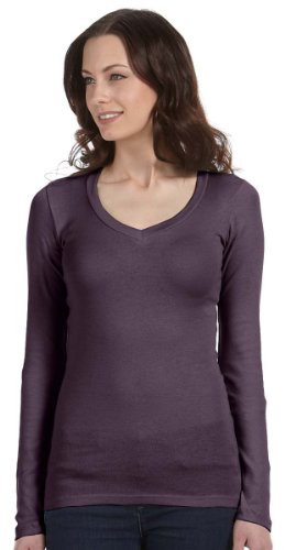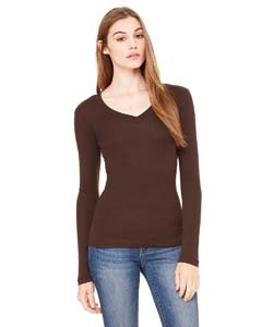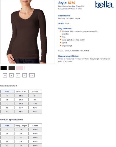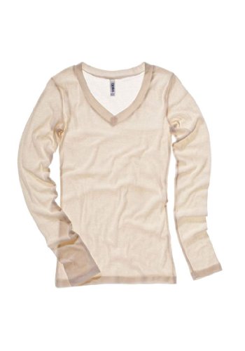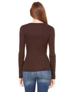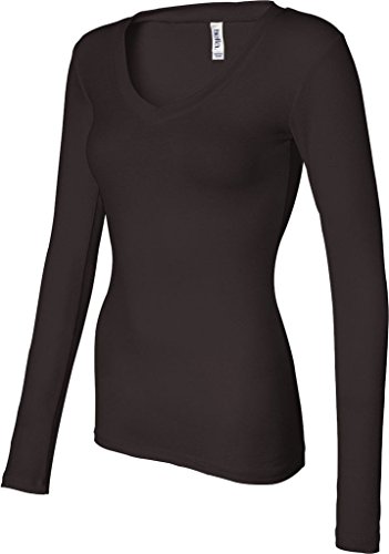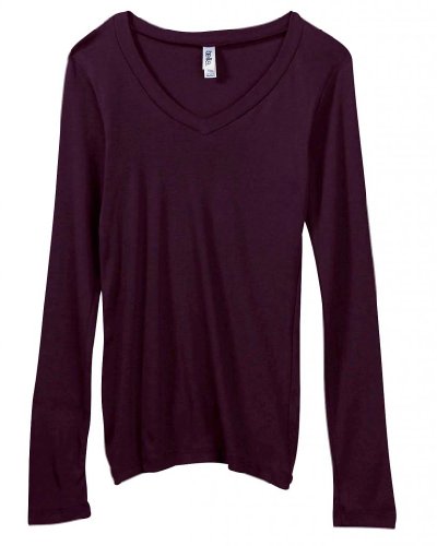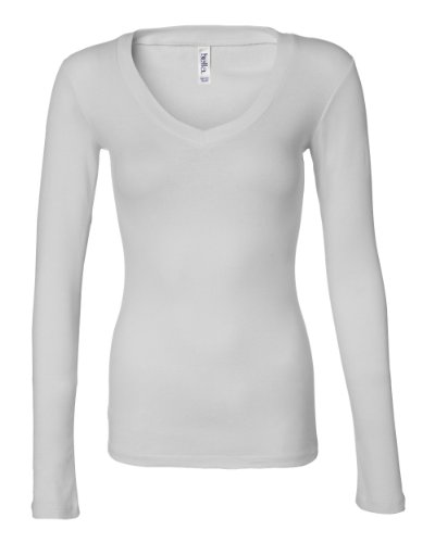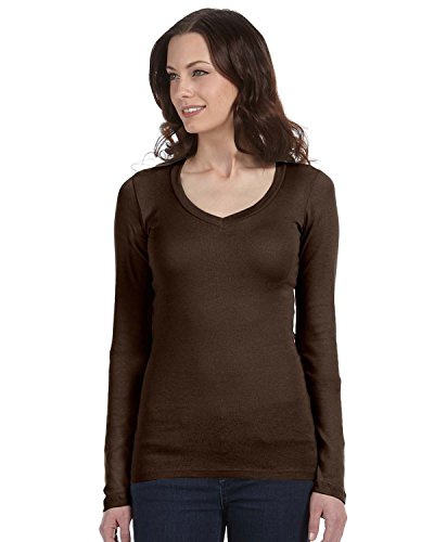 | Bella Womens Andrea Sheer Rib Long Sleeve Longer-Length V Neck T Shirt. B8750 |